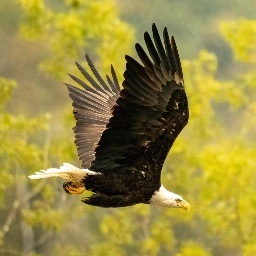 Sample 1: "a bald eagle flying over a tree filled forest"